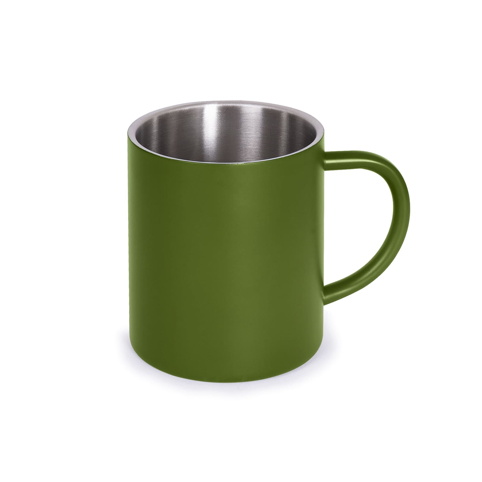Кружка металева з двома стінками: срібляста – з глянцевим покриттям, кольорові (чорна, синя, олива) – з матовим покриттям. Висота 9,2 см Кожна кружка в індивідувльній, чорній подарунковій коробці. Розмір індивідуальної коробки: 10,8 х 10,8 х 8,3 см. Мити тільки вручну, щоб не пошкодити кольорове покриття.