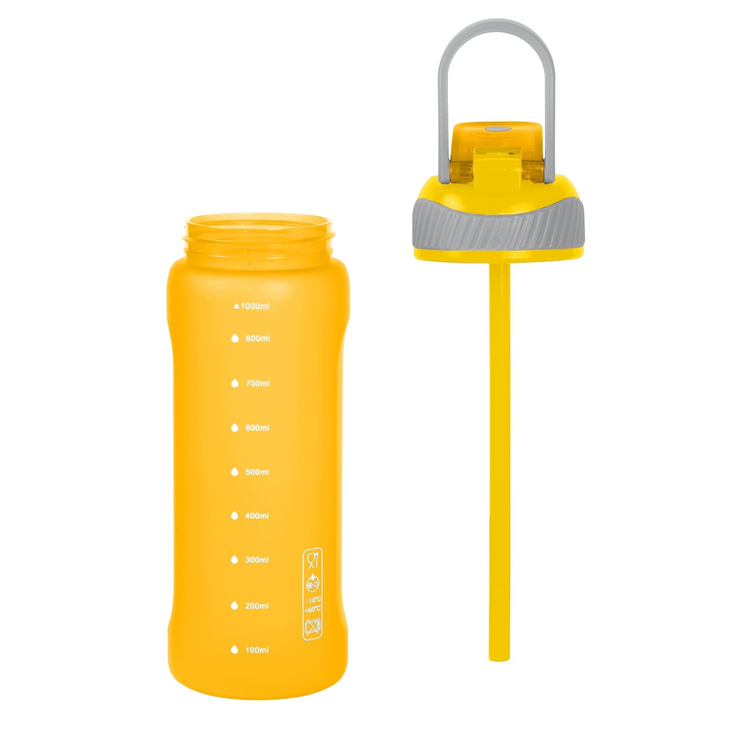 Пляшка для пиття зі з’ємною трубочкою Матеріал RPET пластик, кришка з надійним відкидним механізмом який блокується, має ручку для зручного тримання. Завдяки з’ємній трубочці, ви можете обирати спосіб пиття. Ідеально підходить для щоденного використання, занять спортом або подорожей.