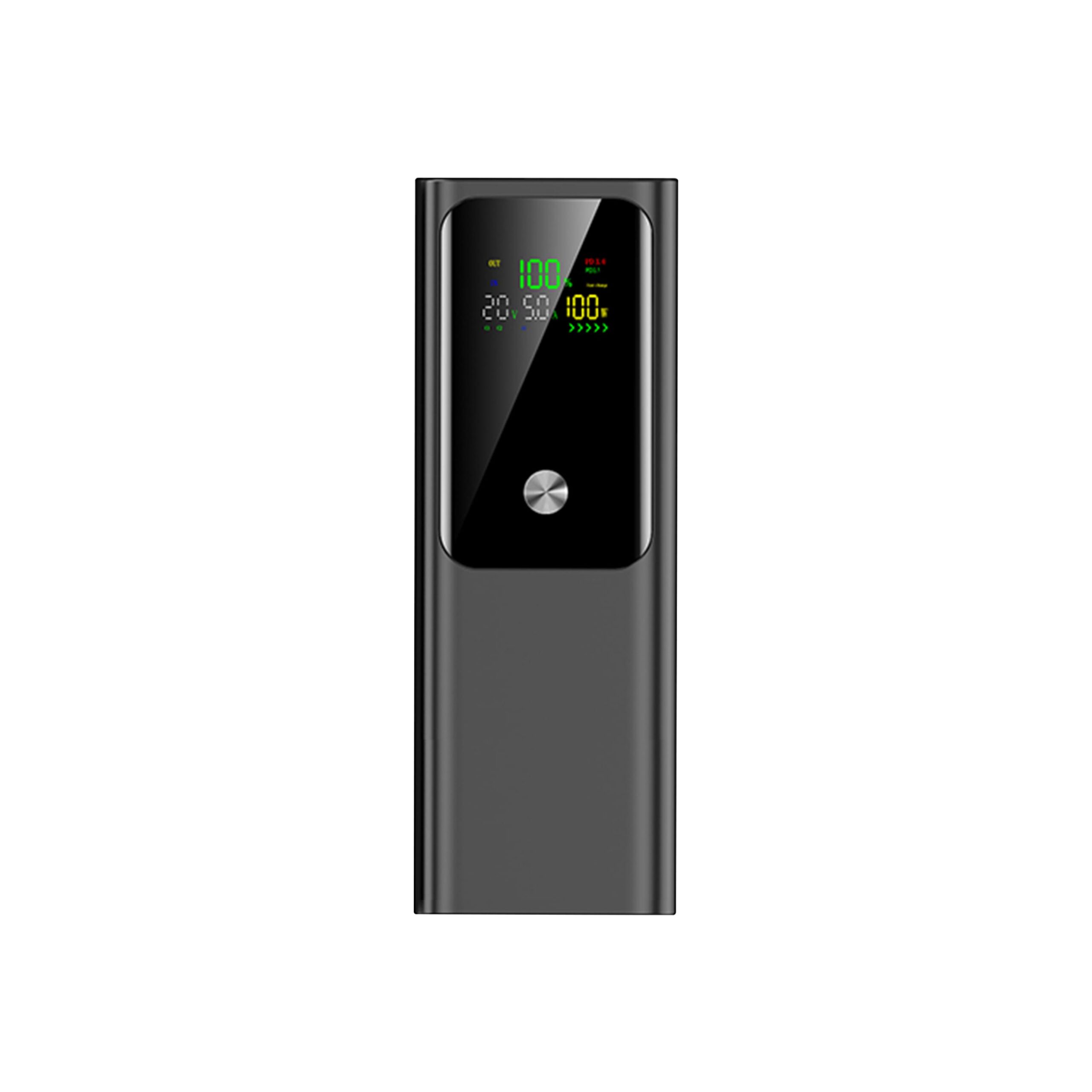 Універсальний зарядний пристрій. Полімерний акумулятор високої якості, широка сумісність. Корпус пристроюABS пластик. LSD дисплей. Має Quick charge Type-C вхід 1/2: 5V-3A, 9V-3A, 12V-3A, 15V-3A, 20V-3A Type-C вихід 1/2: 5V-3A, 9V-3A, 12V-3A, 15V-3A, 20V-5A (100W Max) USB вихід : 5V-3A, 9V-3A, 10V-2.25A, 12V-3A, 15V-3A, 20V-2.3A