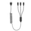 Універсальний кабель 3-в-1 для зарядки гаджетів, довжина в розтягнутому стані 1,2 м. Має стандартний USB вхід для підключення живлення та три різні виходи Lightning + Mscro USB + Type-C.