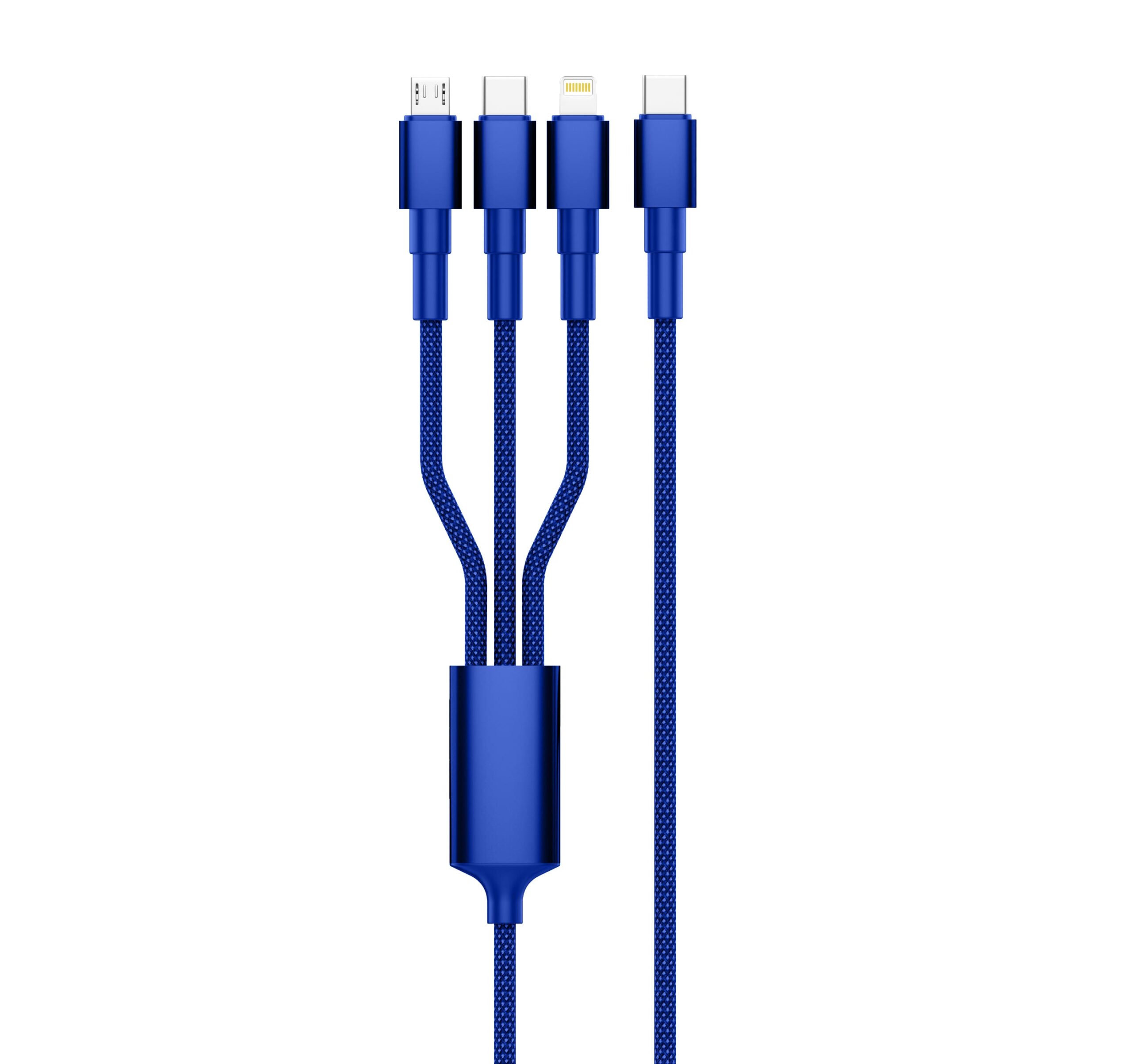 Універсальний кабель 3-в-1 для зарядки гаджетів. Має стандартний Type-C вхід для підключення живлення та три різні виходи Lightning + Micro USB + Type-C. Матеріал: алюміній, нейлоновий плетений шнур. Type-C to Type – C : 30V3A , 60W max Type-C to Lightning : 5V2.4A, 12W max Type-C to Micro : 5V2.4A, 12W max